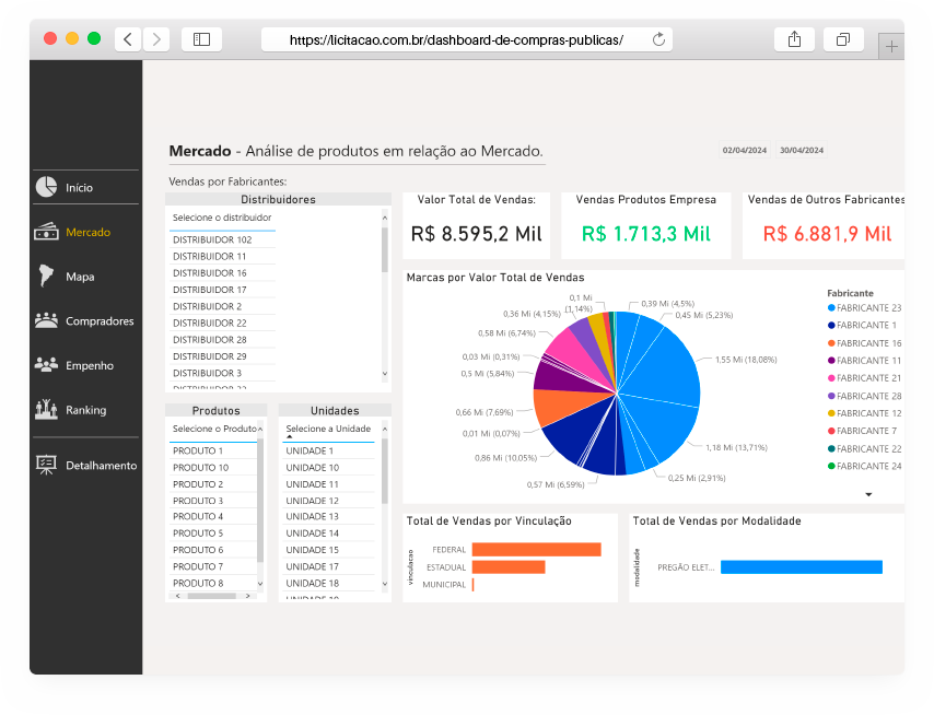 Obtenha uma visão completa do mercado com nosso Dashboard de Compras Públicas. O monitoramento de produtos permite que sua empresa esteja sempre um passo à frente.